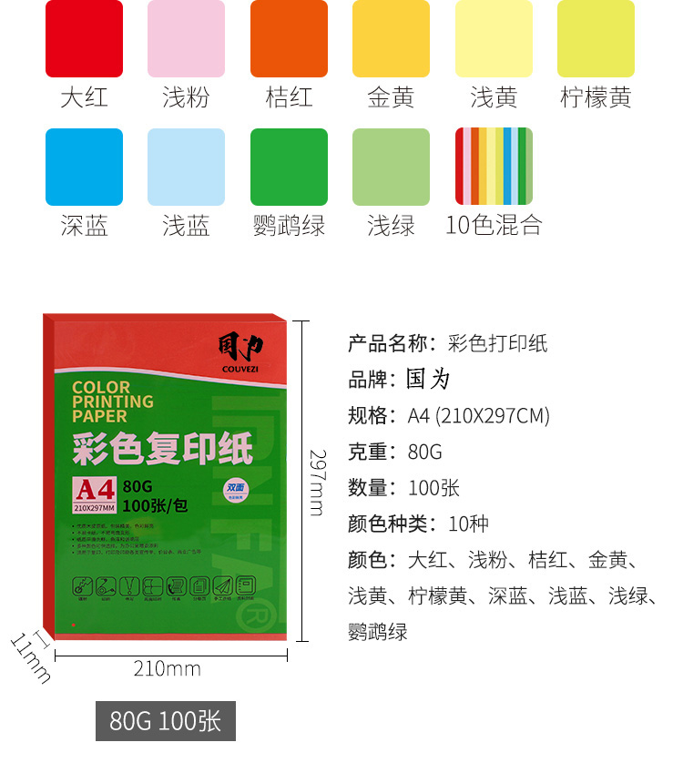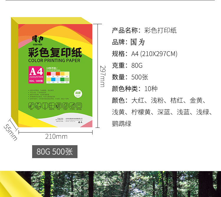 国为 彩色复印纸 打印纸A4 5...