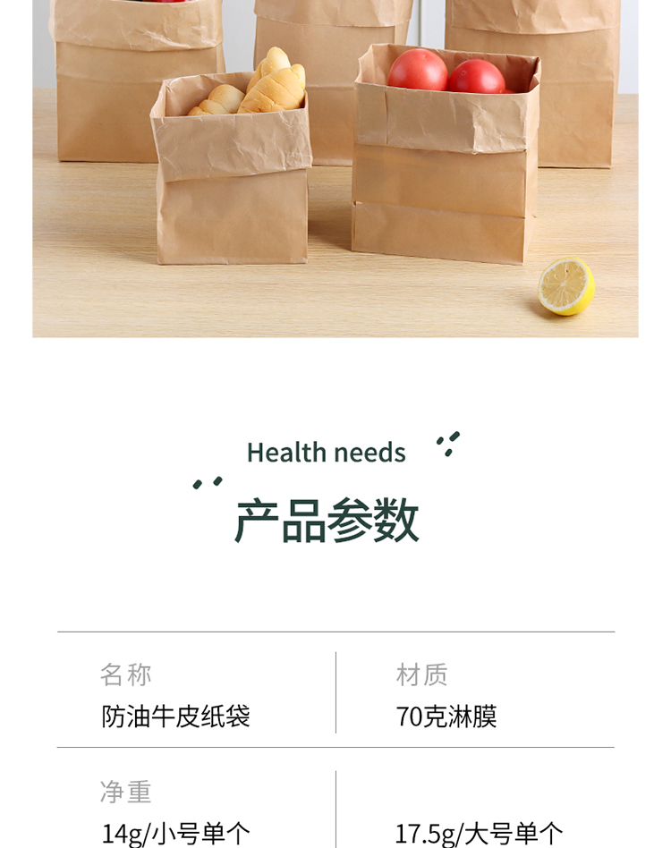 拜杰(baijie)sn-129 装防油牛皮纸袋 50个 牛皮纸色 (单位:包)