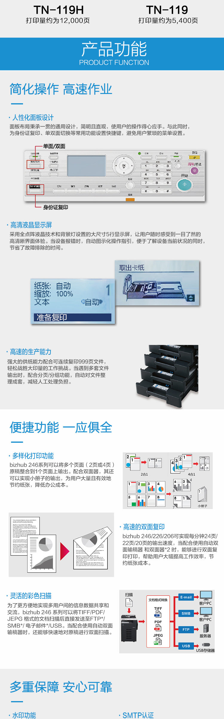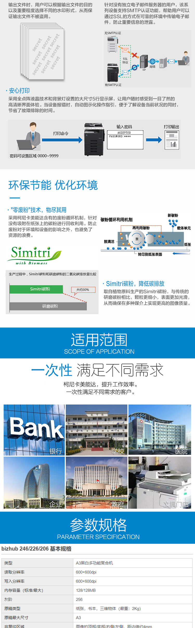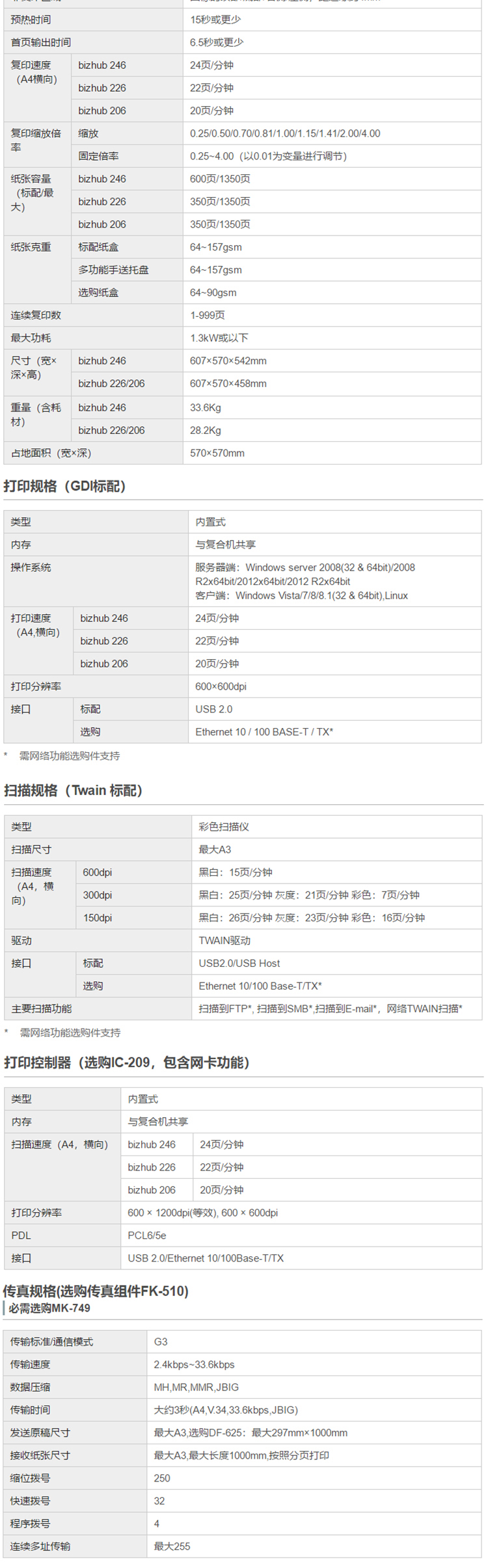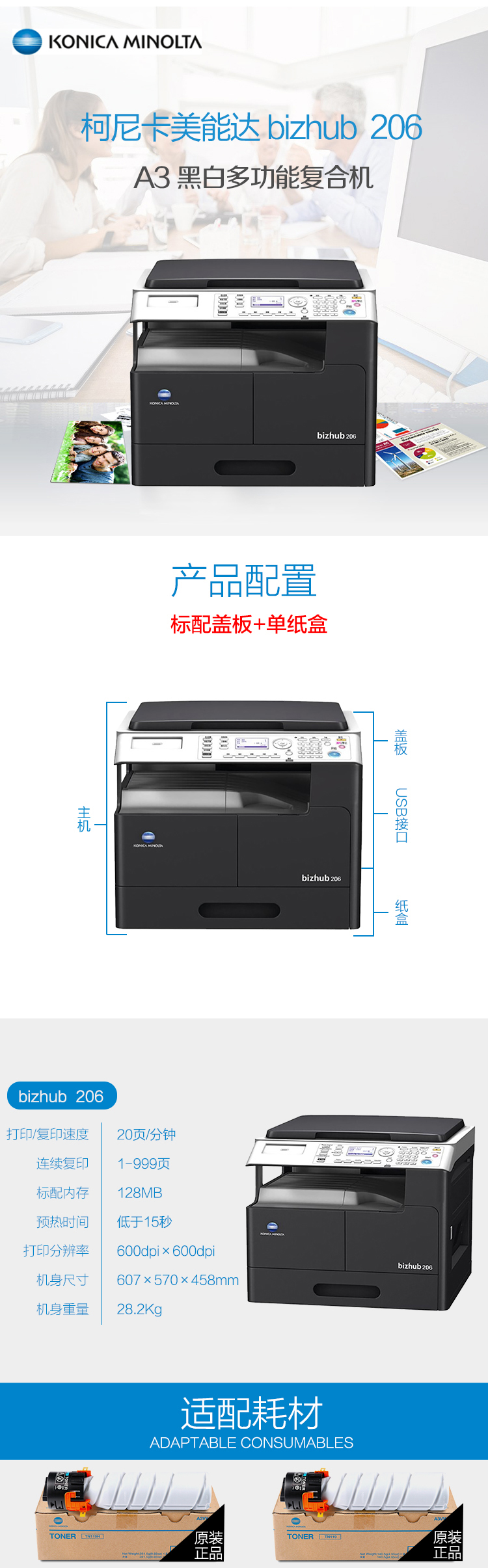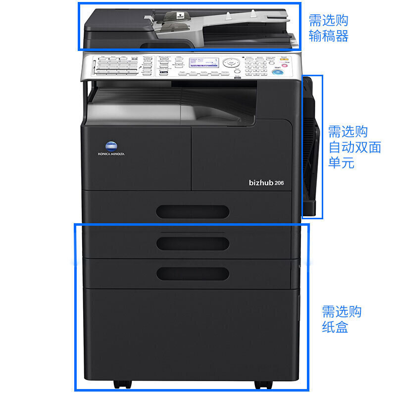 柯尼卡美能达 bizhub 206 A3黑白多功能复合机 一体机(标配盖板+单纸盒)黑色(单位:台)