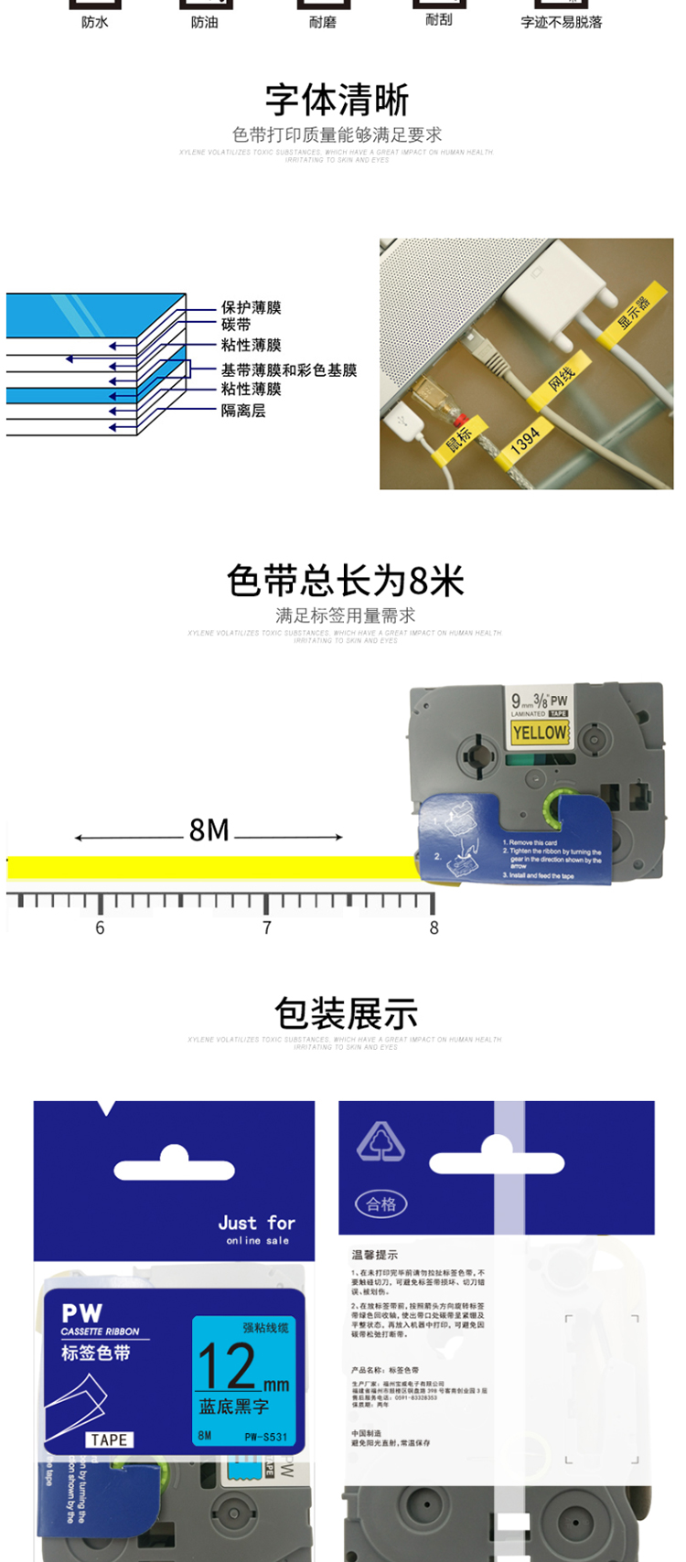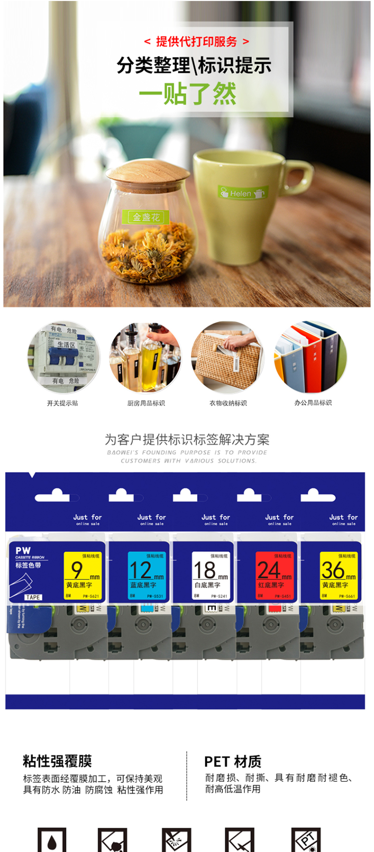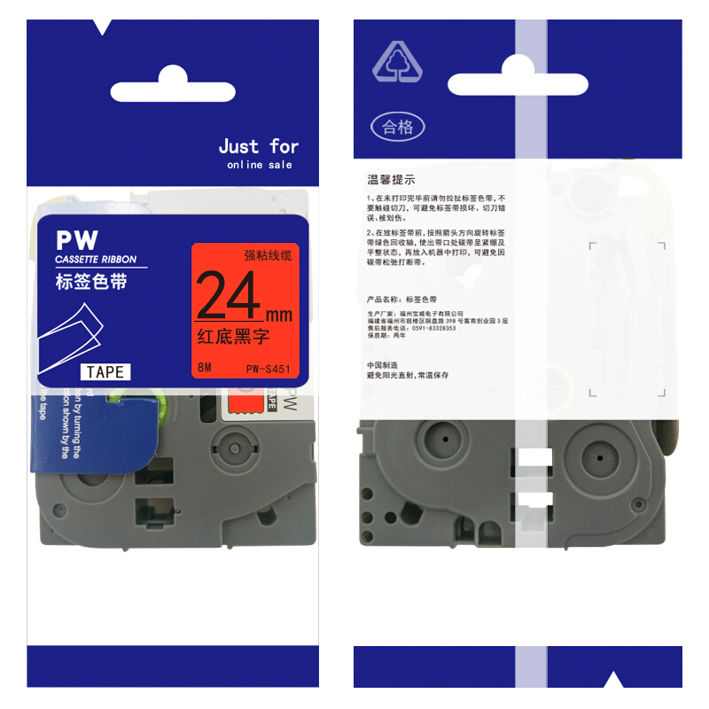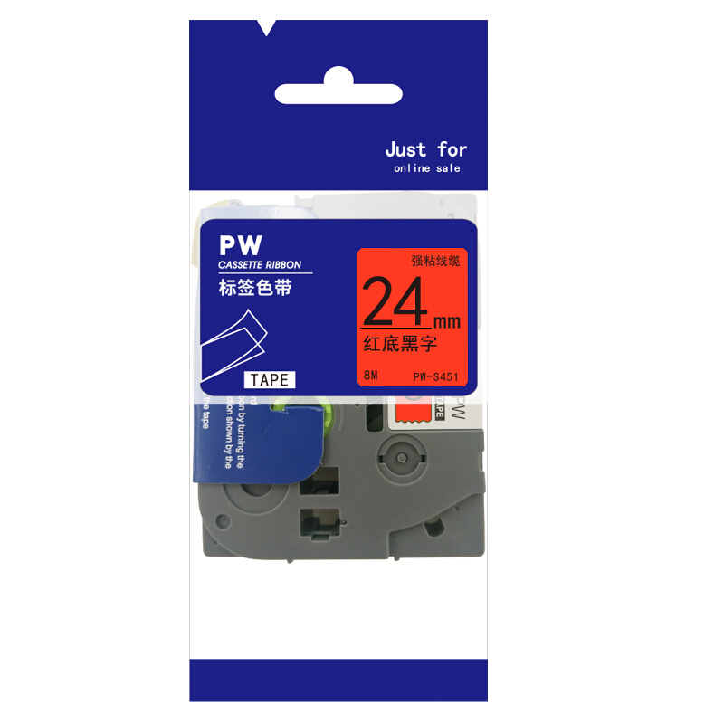 宝威 PW-S451不干胶打印纸粘性强三防线缆标签 国产色带 24mm 适用于兄弟标签机 红底黑字(单位:盒)