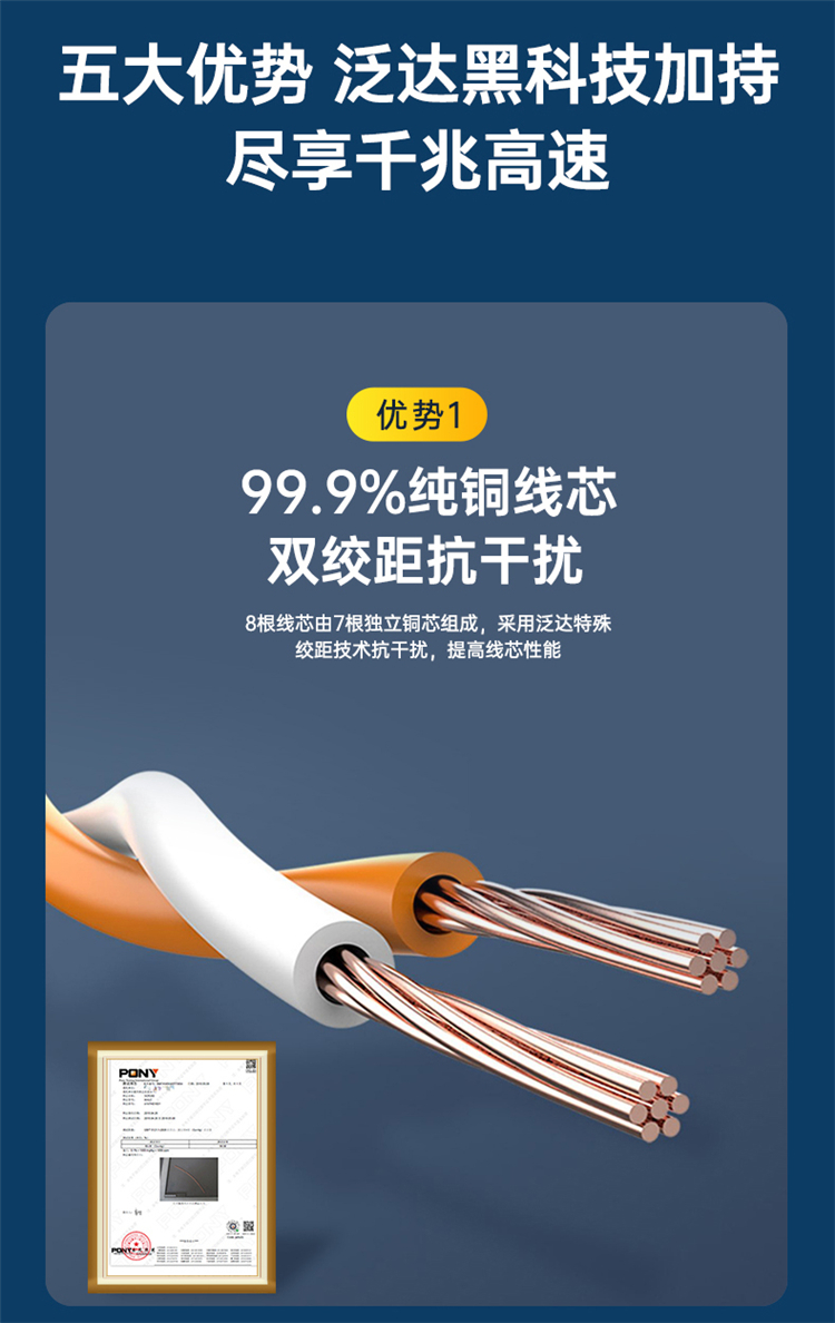 泛达 超六类非屏蔽细网线超6类成...
