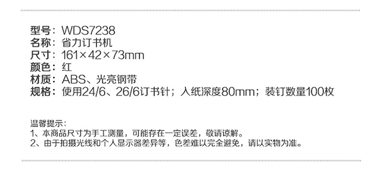 飞兹 DSJ7238 大号省力订书机 12# 红色 (单位:个)