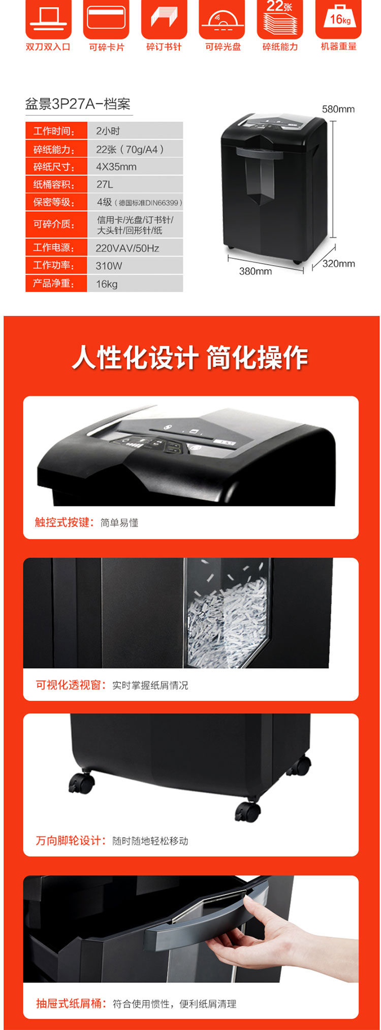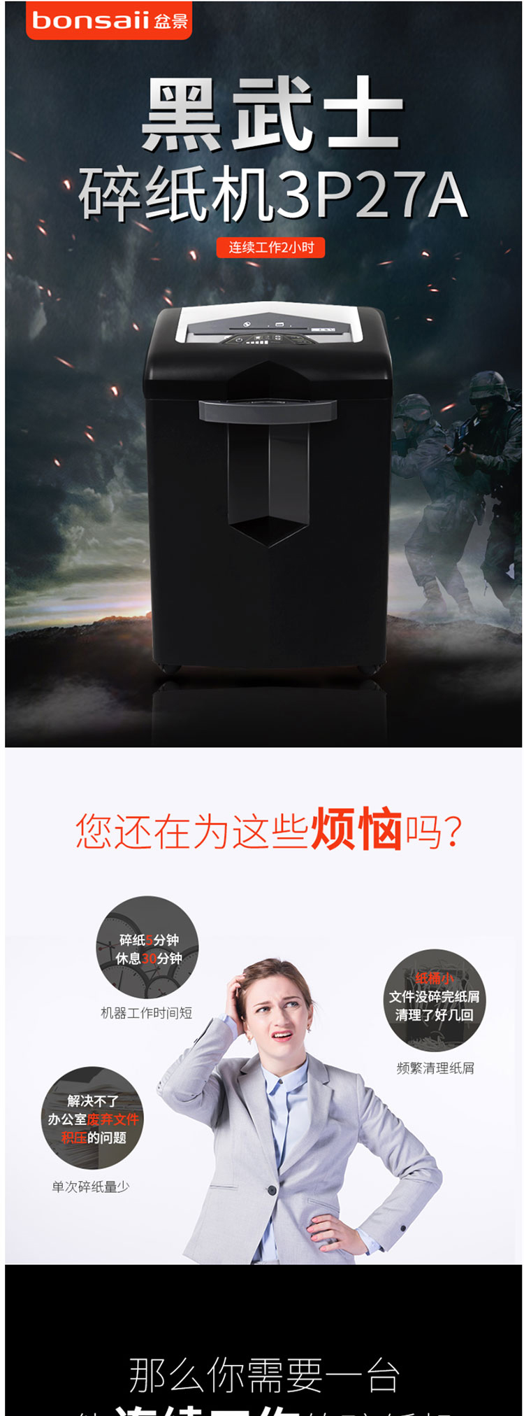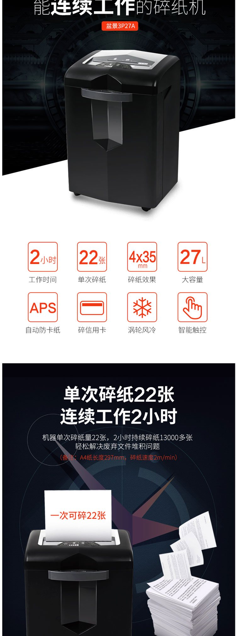 盆景 3P27A 碎纸机 黑色