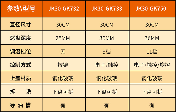 九阳 JK30-GK750 30CM多功能可拆洗家用双面 煎烤机(单位:台)