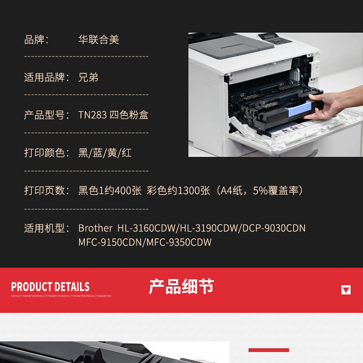 华联合美 TN-283C 墨粉盒(适用兄弟3160CDW/3190CDW/9030CDN/9150CDN/9350CDN打印机硒鼓) 蓝色(单位:个)