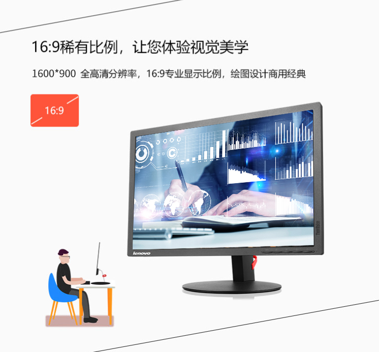 联想/lenovo ThinkVision 21.5(T2225) 电脑显示器 YC 21.5/1920 x 1080/VGA, DVI /HDMI转DVI线/可俯仰/15个月部件和人工,15个月有限上门