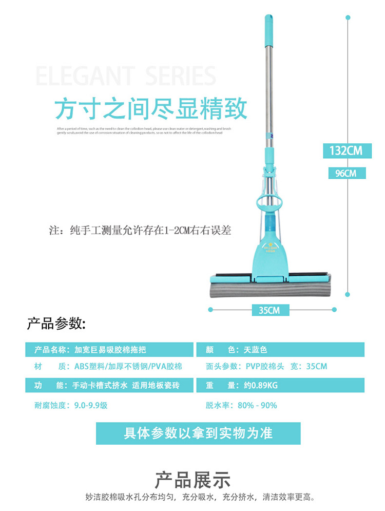 妙洁(MIAOJIE) 35厘米 加宽海绵胶棉拖把 (单位:个)