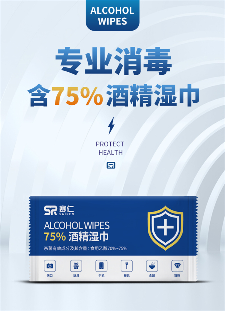赛仁 50片装/盒 酒精湿巾 蓝色 (...