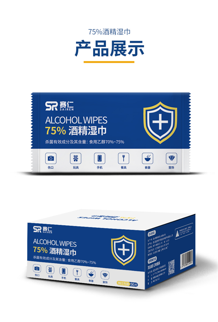 赛仁 50片装/盒 酒精湿巾 ...