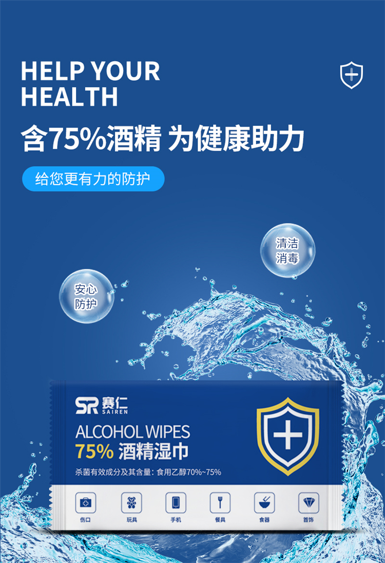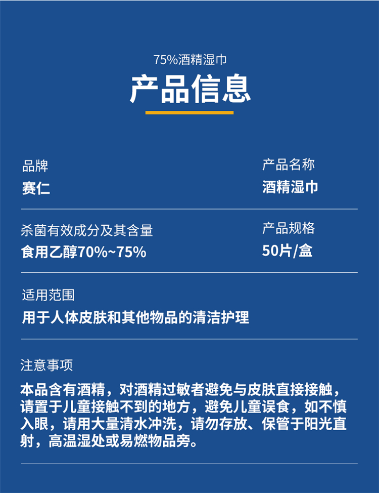 赛仁 50片装/盒 酒精湿巾 蓝色 (单位:盒)