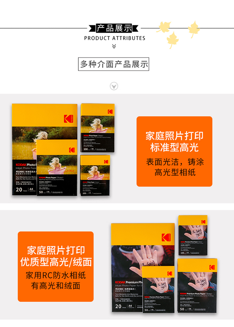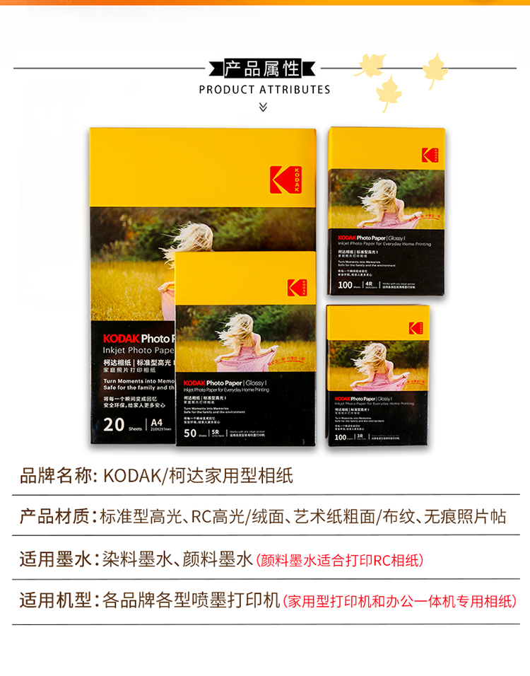 柯达 K065 标准型高光家庭照片打印相纸 4R 200g 100张/包 白色 (单位:包)