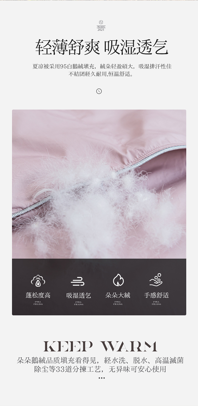 okioki OK21909 超轻薄感日式水洗羽绒被 200*230cm 豆沙色 (单位:条)