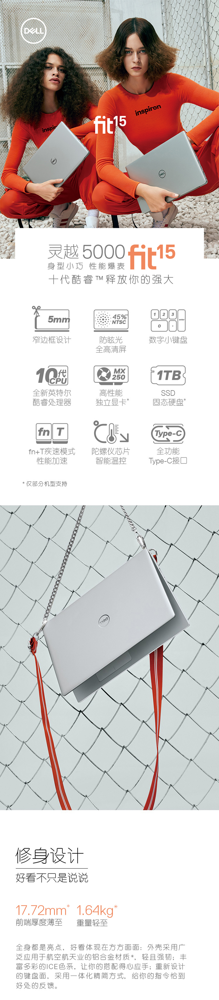 戴尔 灵越5000 fit 15.6英寸 i7-10510U 8G 1TSSD MX250 2G 银色(单位:台)