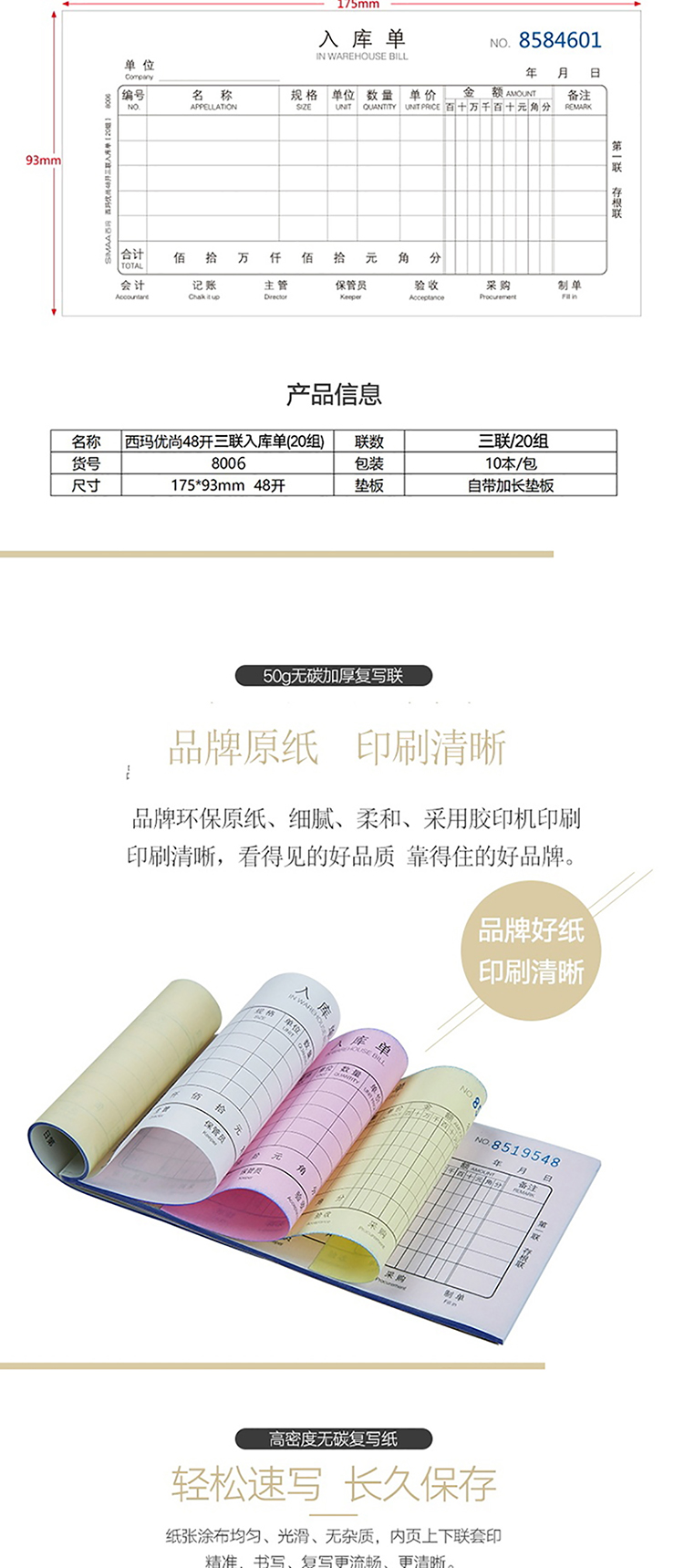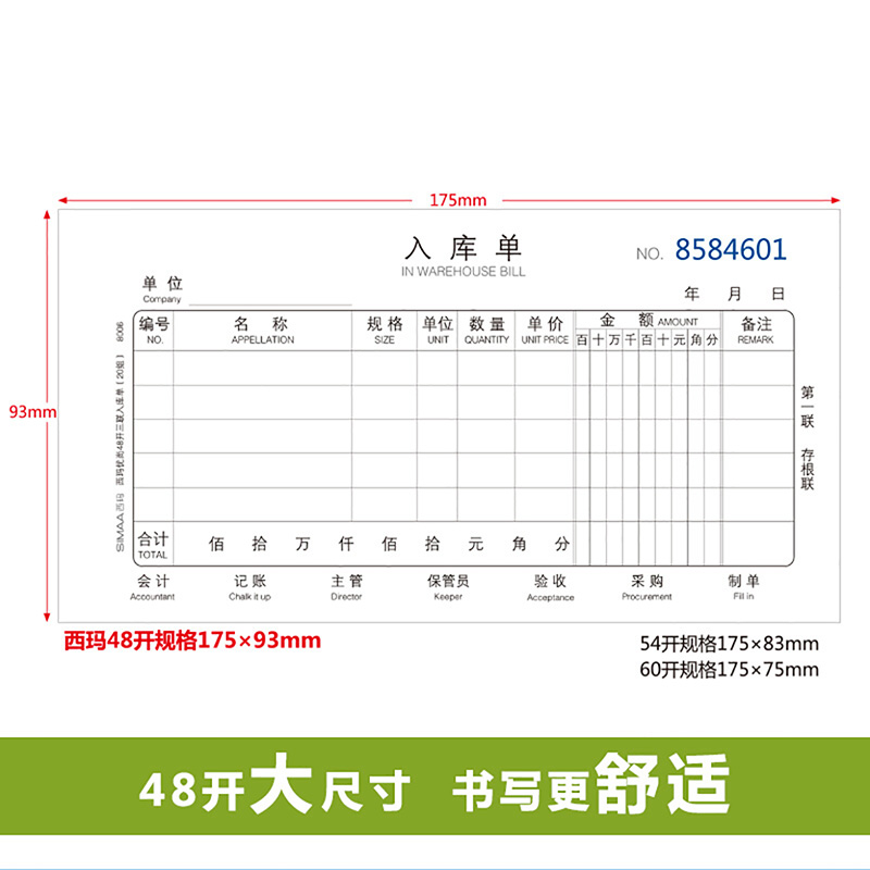 西玛 8006 三联入库单 48...