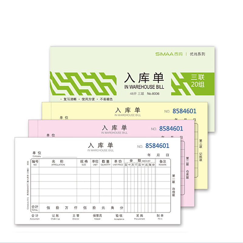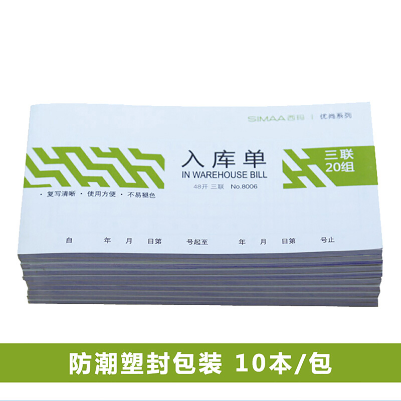 西玛 8006 三联入库单 48K 10本 彩色 (单位:包)