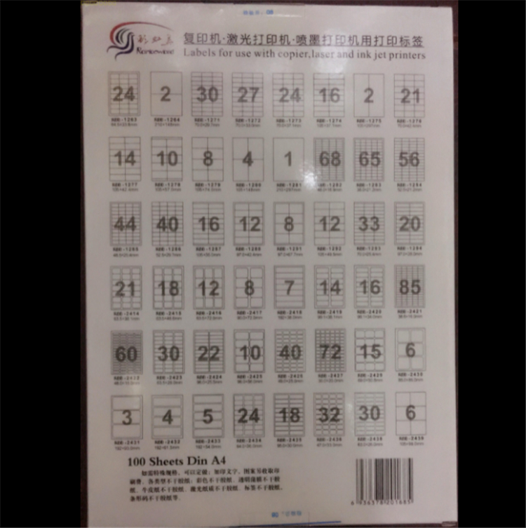 彩虹鸟 1285(44格) 不干胶打印纸...