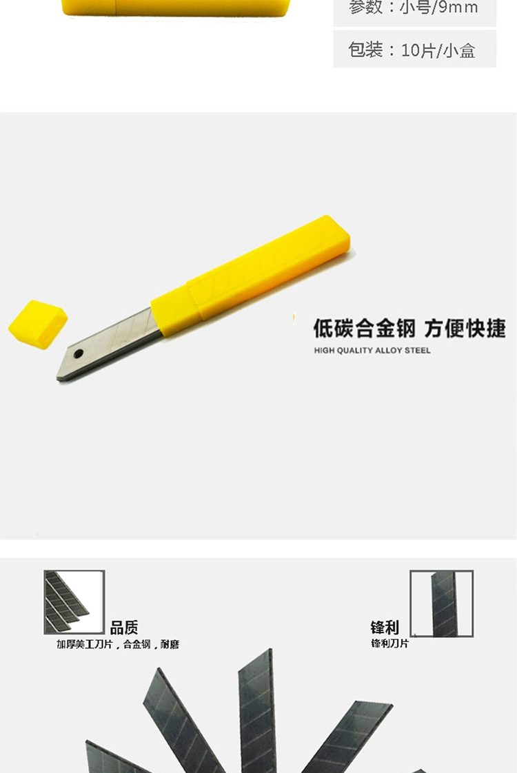 欧标 B2460 美工刀片 大号钛钢刀片9mm 替换刀片 10片装 银色(单位:盒)