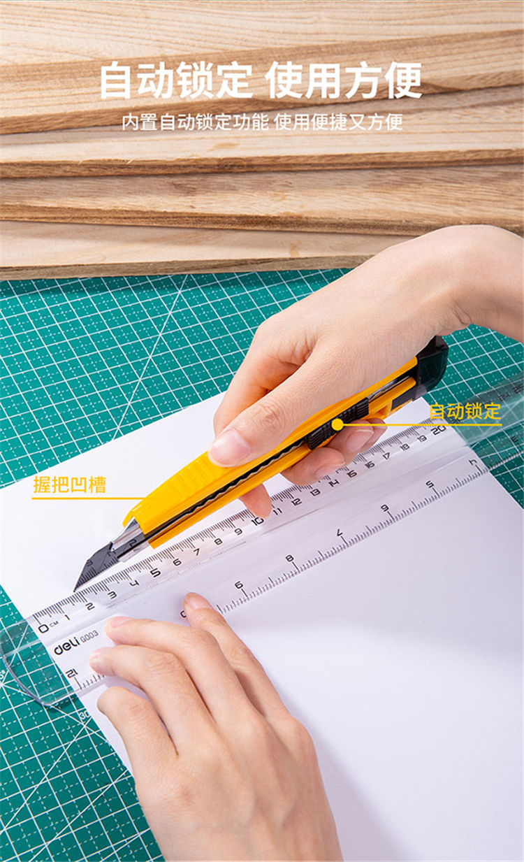 得力(deli) 2041S 大号黑刃自锁美工刀/裁纸刀/壁纸刀 黄色 (单位:把)