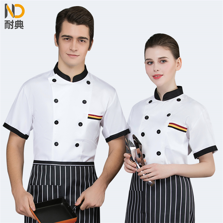 耐典 2XL 全工艺面料三杠兜口设计耐穿男女厨师服 蛋糕店酒店饭店料理服务员工作服 白色短袖(单位:件)