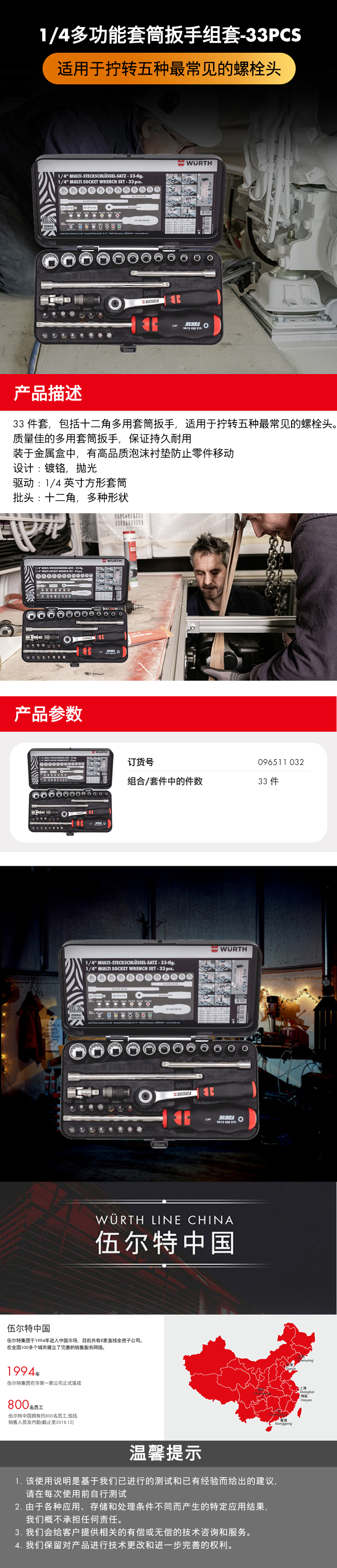伍尔特 (WURTH) 096511 032 1/4多功能套筒扳手组套-33PCS (单位:套)^M9006004349100
