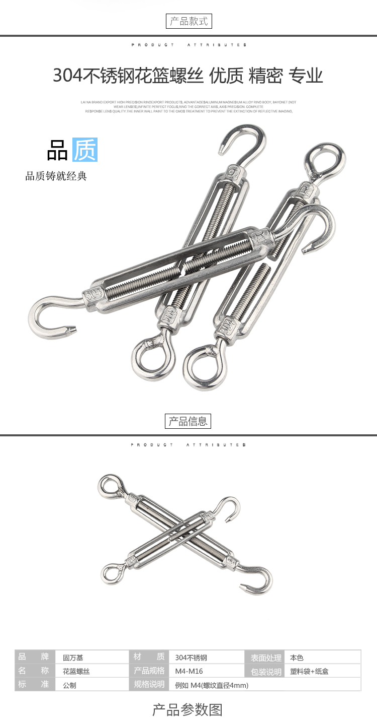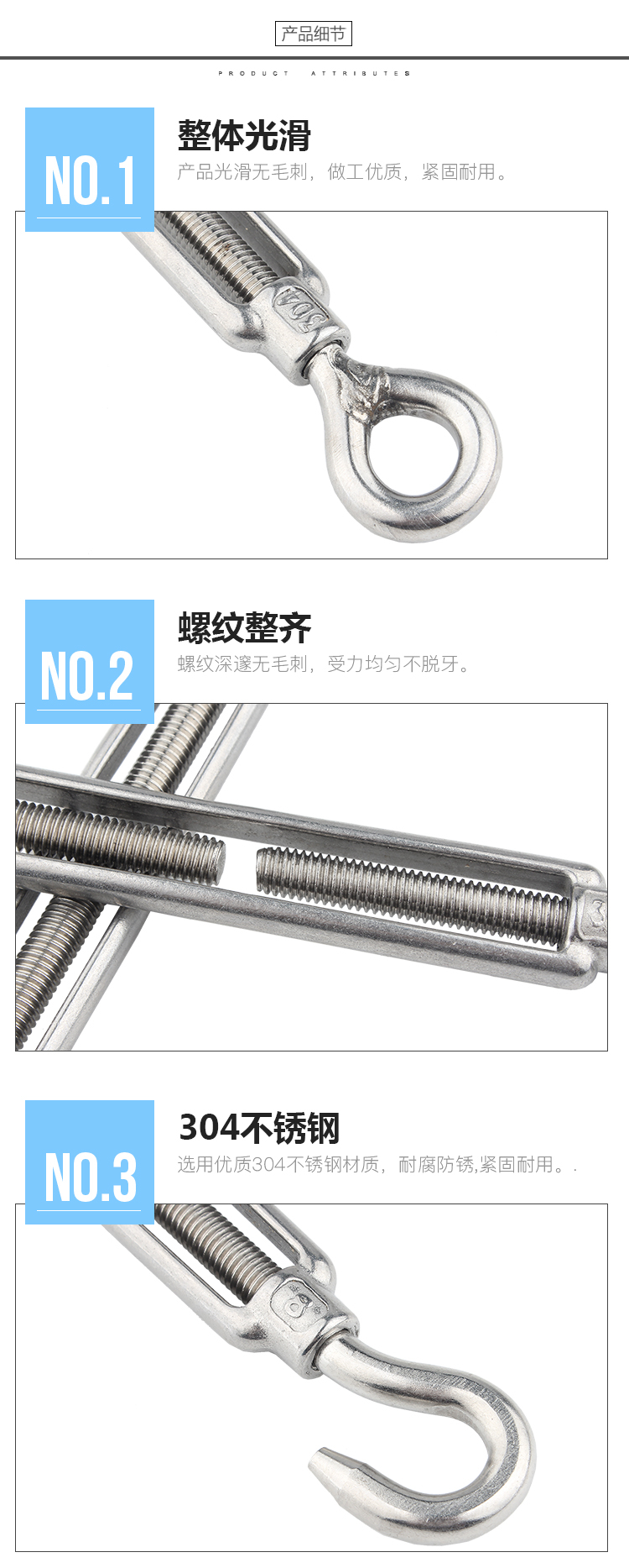 国产 钢丝绳拉紧器 国标M16 钩—钩 不锈钢(单位:个)
