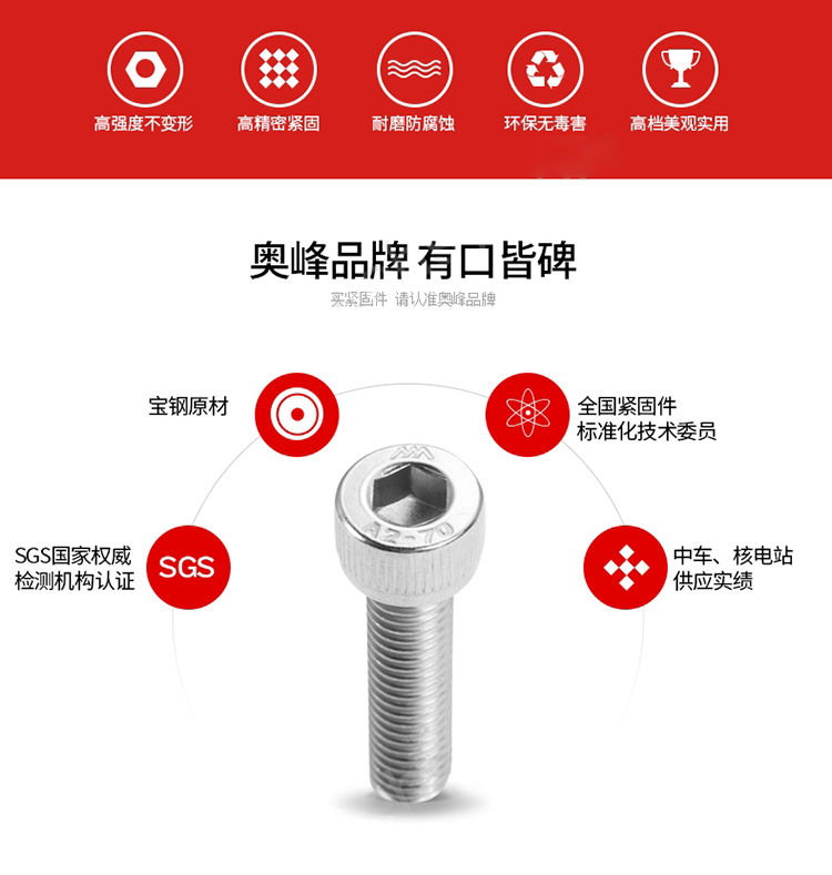 奥峰 DIN912全牙内六角圆柱头螺钉,...