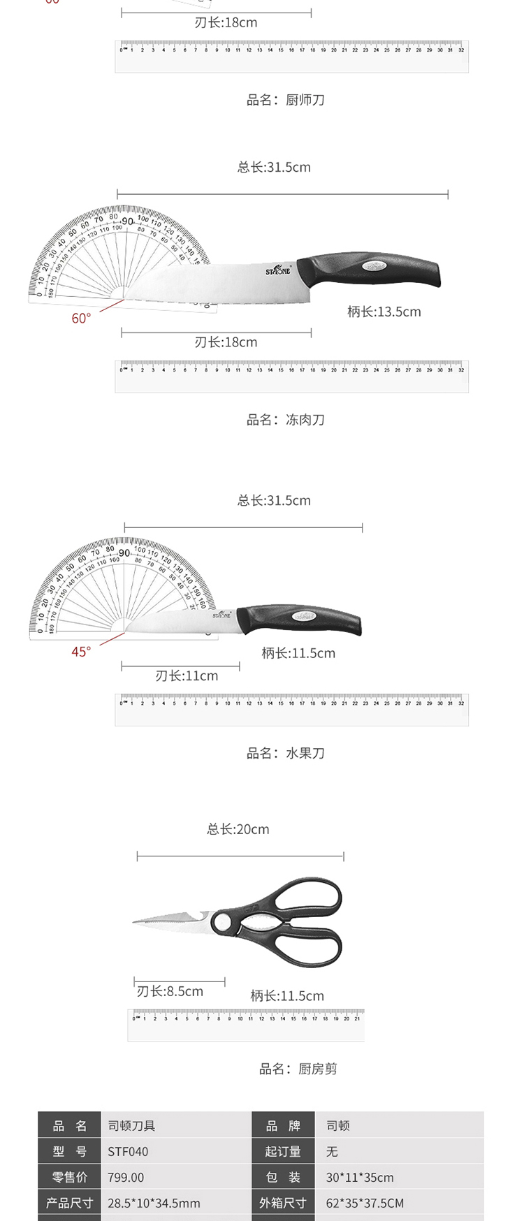 司顿 STH040 七件套刀具套装 白色...