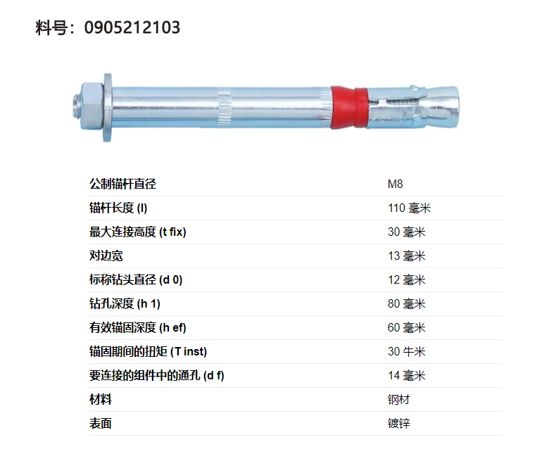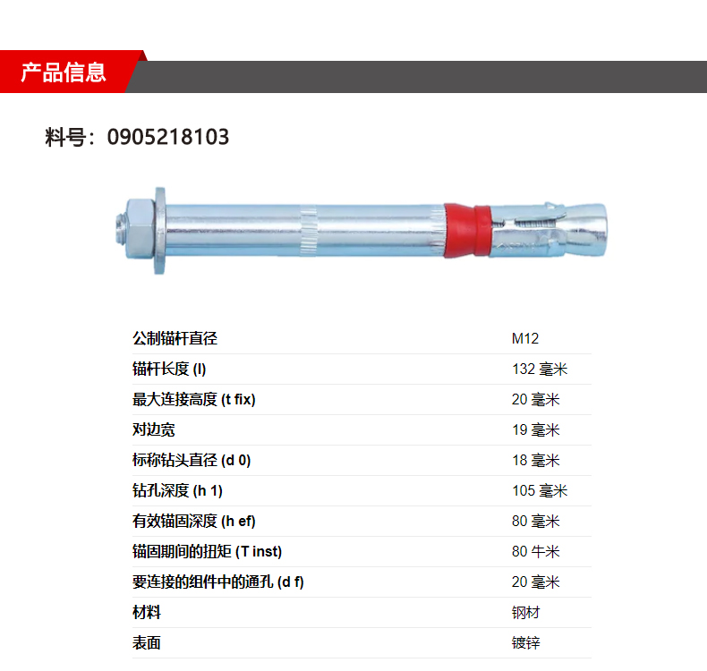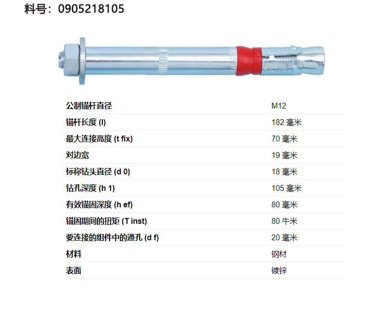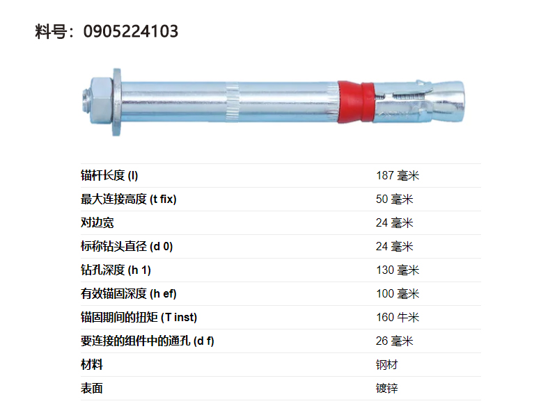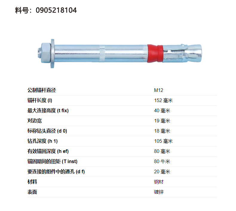 伍尔特 (WURTH) 0905218104 套管式裂缝可靠锚栓W-HAZ/B- (A2K)-40-M12X152 20个/件(单位:件)^M9006004333400