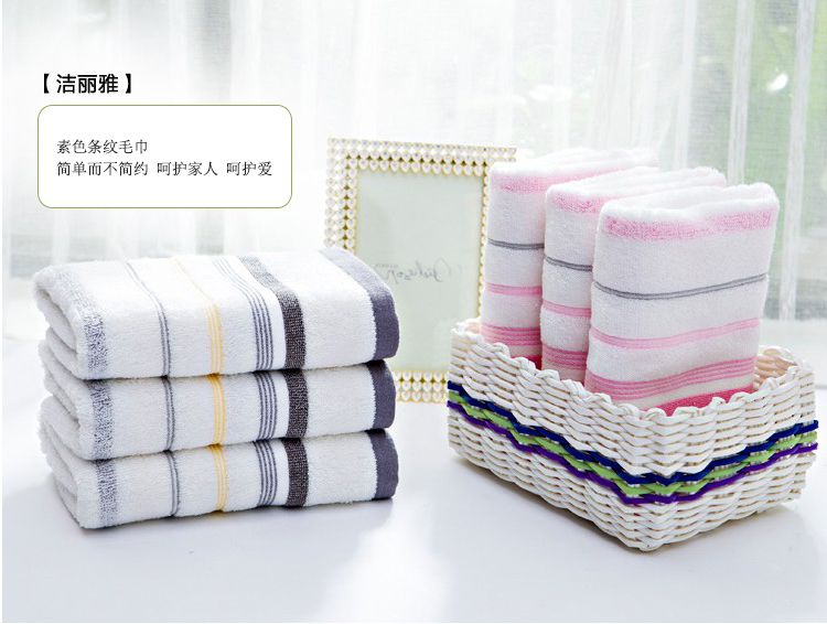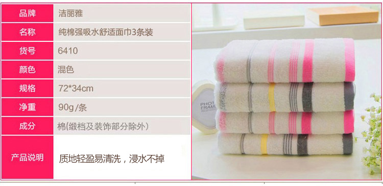 洁丽雅 90g 72*34cm 纯棉条纹舒适柔软面巾 3条/组(单位:组)