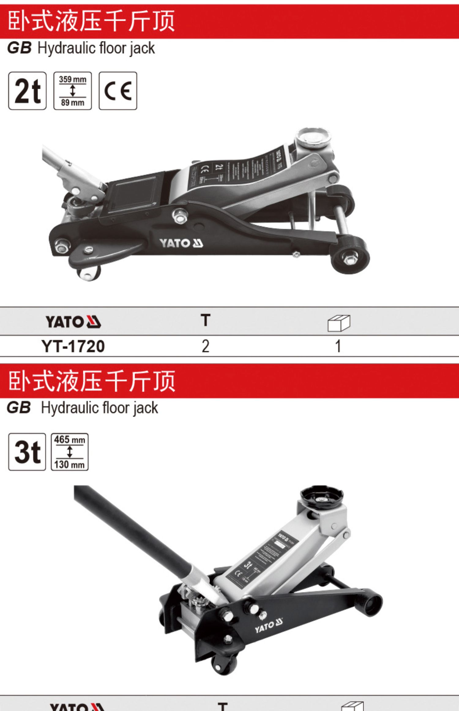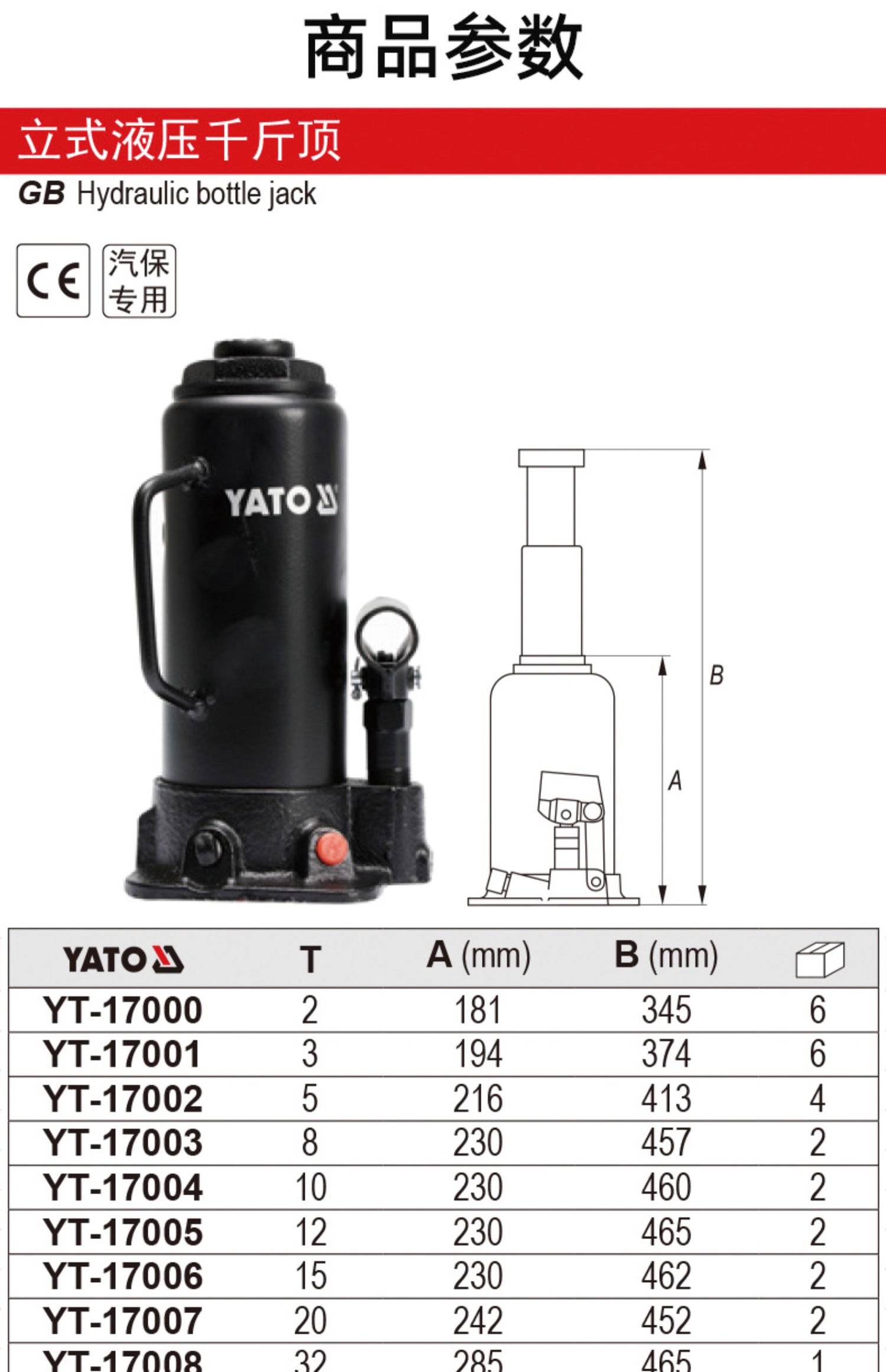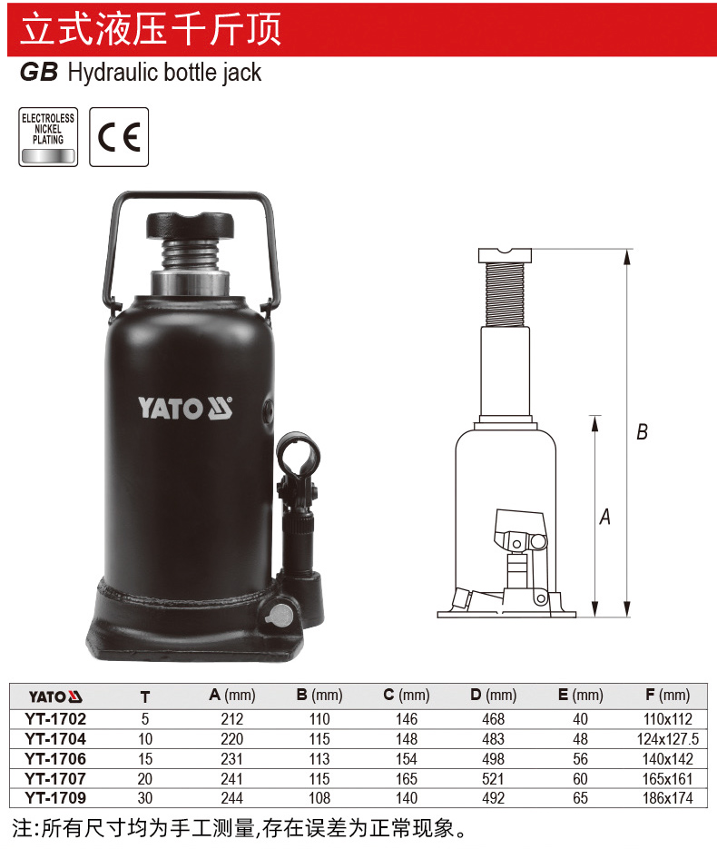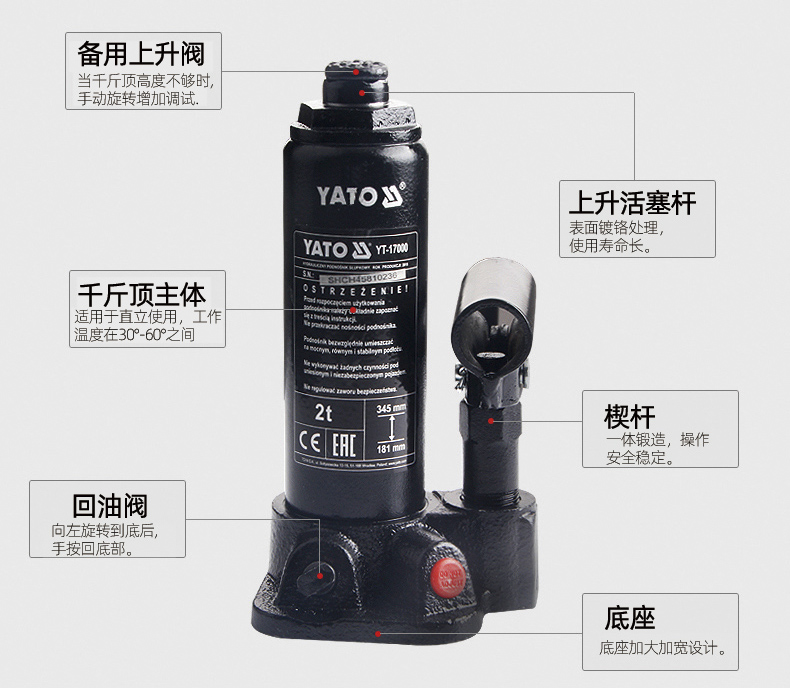 易尔拓/YATO YT-17000 . 立式液压千斤顶2T 1/台