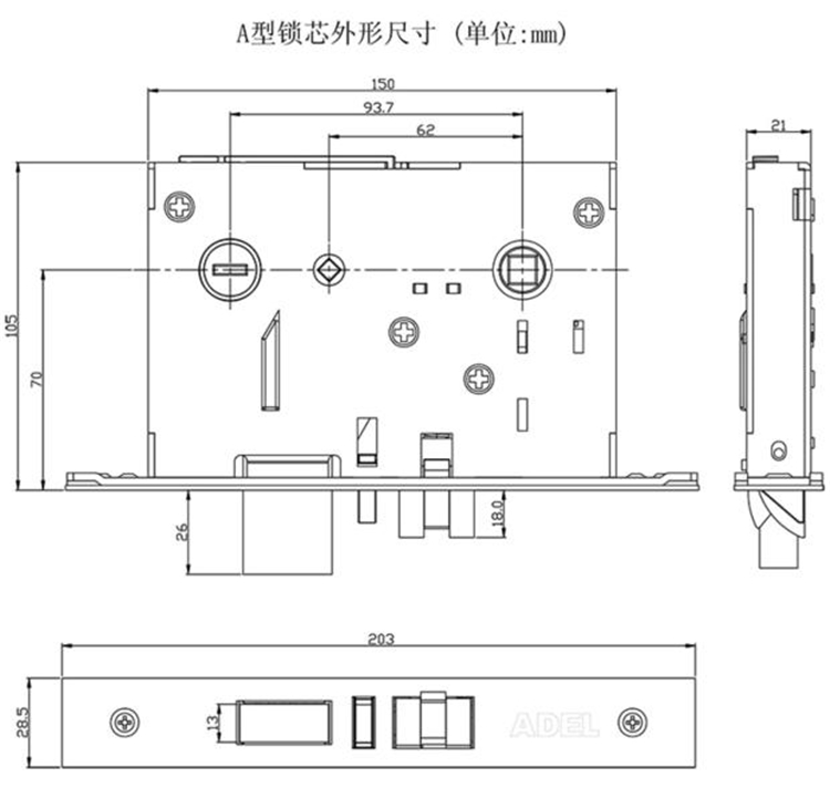 国产 1003不锈钢色门锁右内开 单锁芯(单位:个)