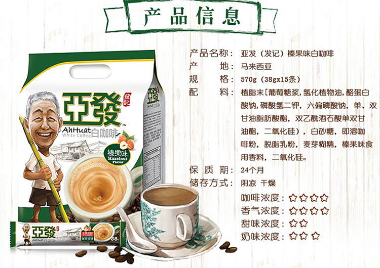 亚发 经典白咖啡30g*15条 450g 单位:袋