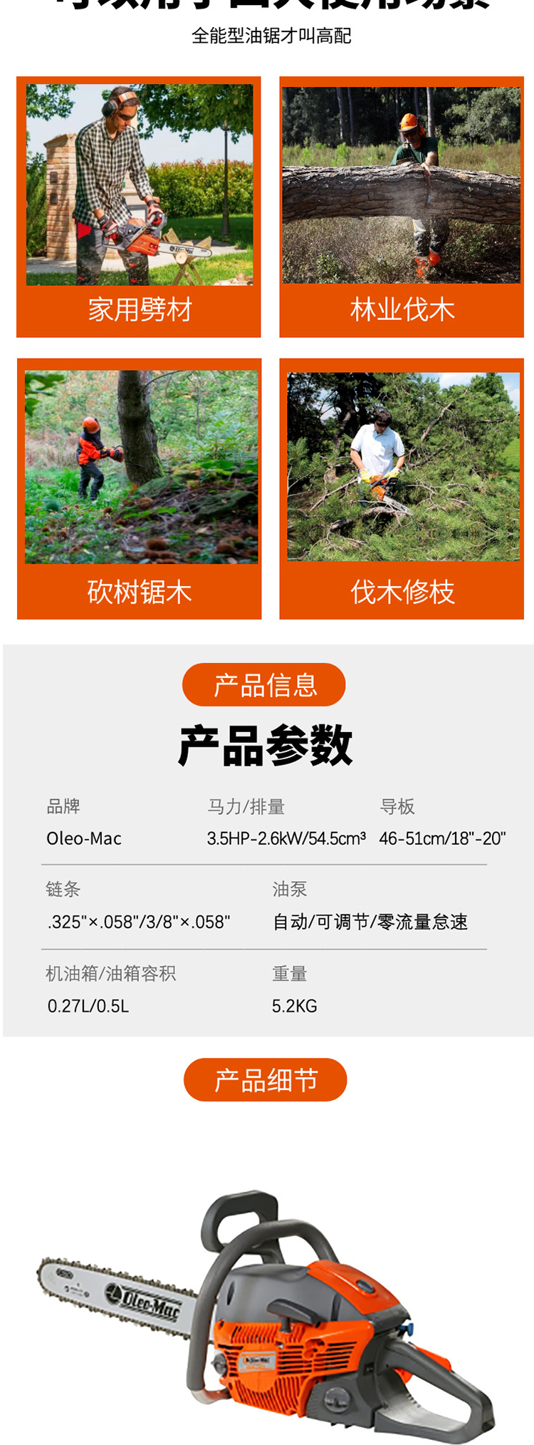 欧玛 GSZ 560 汽油锯 标配20寸导板 链条.325"×.058" 橘色(单位:台)