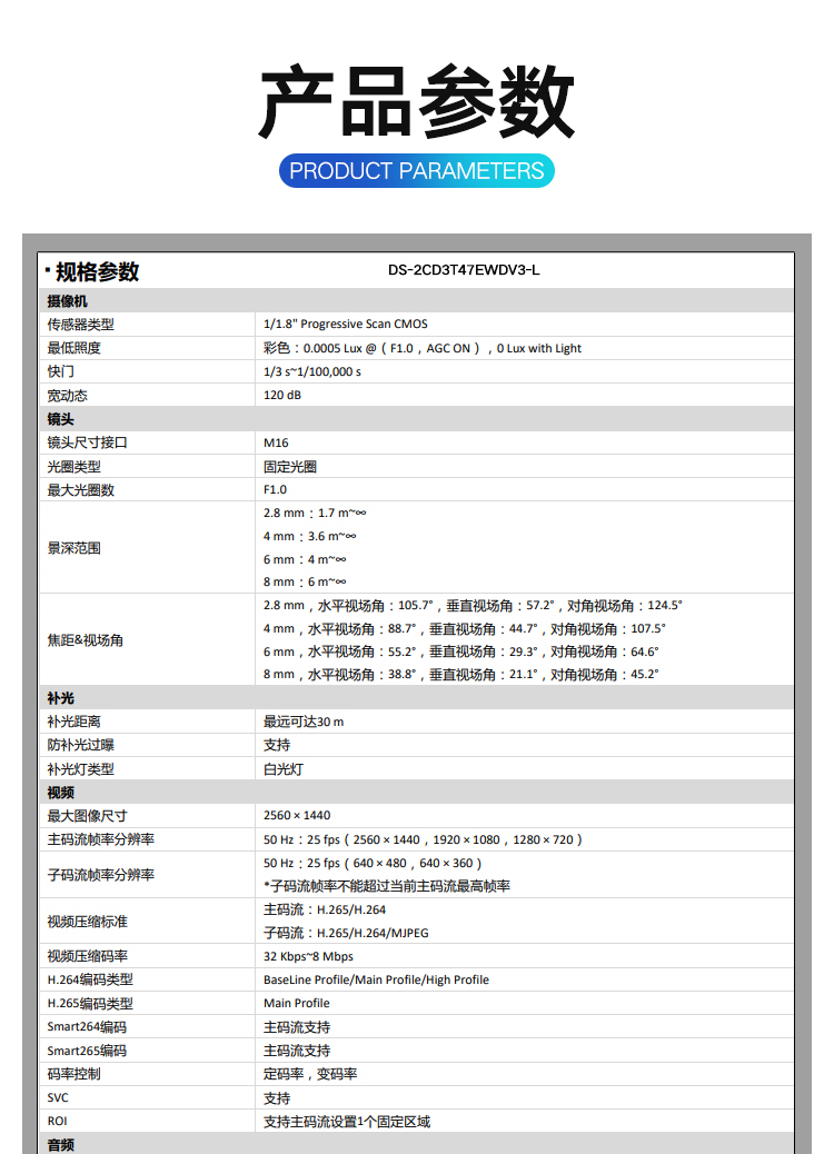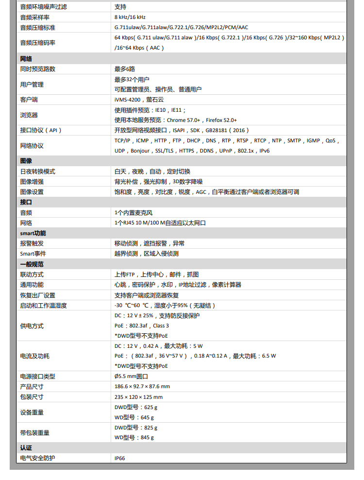 海康威视 3T47EWDV3-L 4MM网络监控摄像头 白色(单位:个)