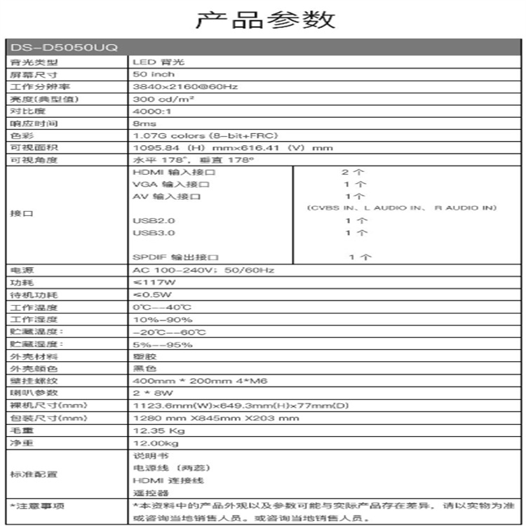 海康威视(HIKVISION)DS-D5055UP 55寸 显示器(单位:台)