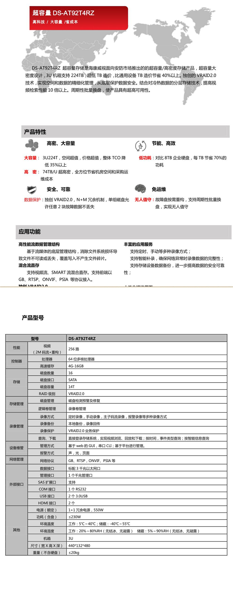 海康威视 DS-AT92T4RZ 服务器(64位多核处理器/4GB内存/224TB硬盘/4千兆以太网口数据接口/1个千兆管理口/配高清解码器DS-6916UD/一年保修)(单位:台)