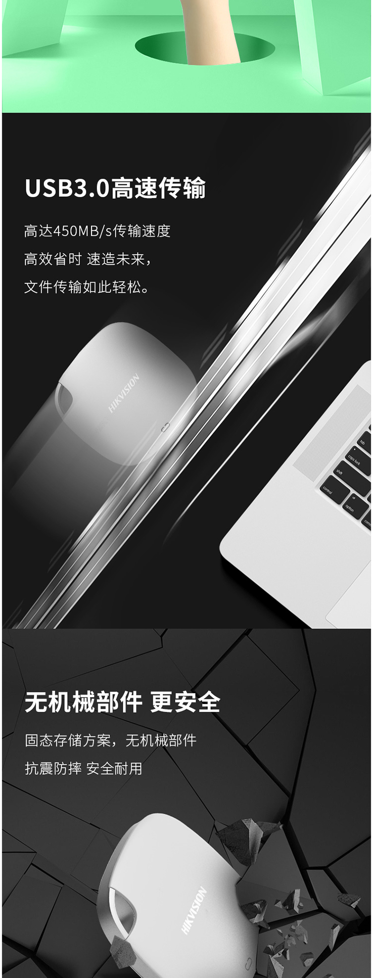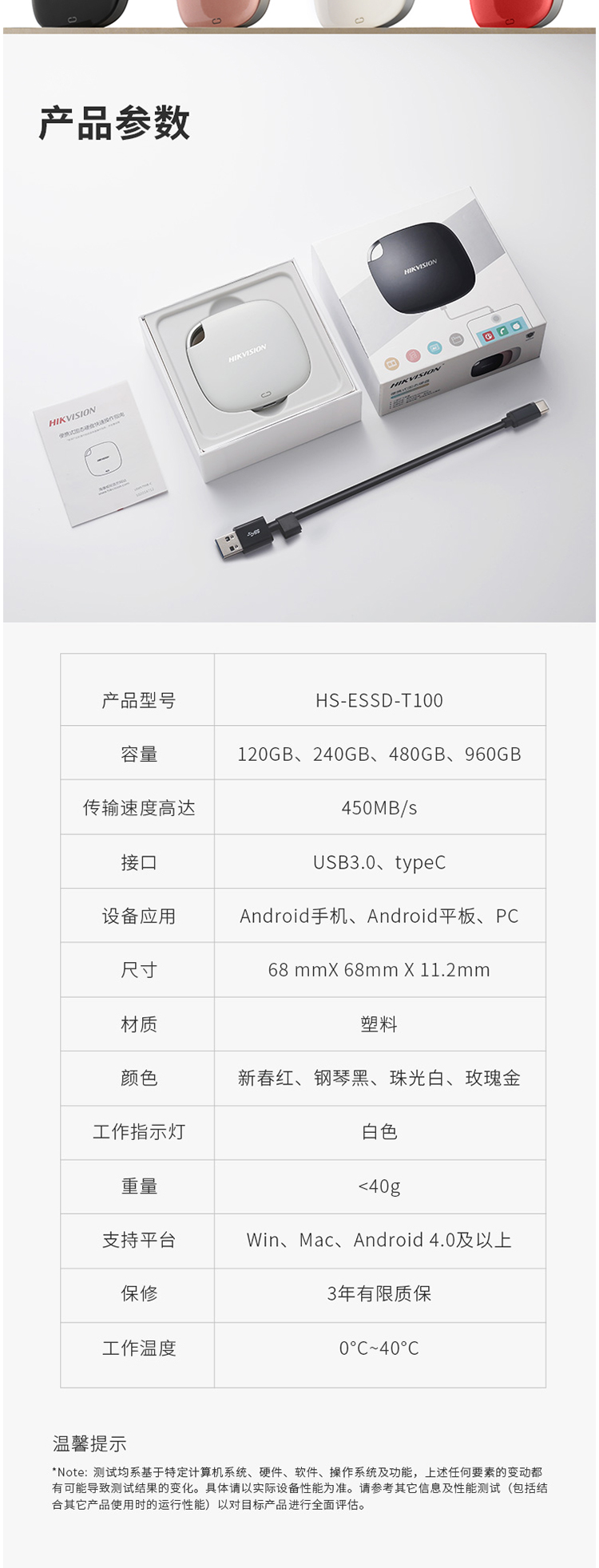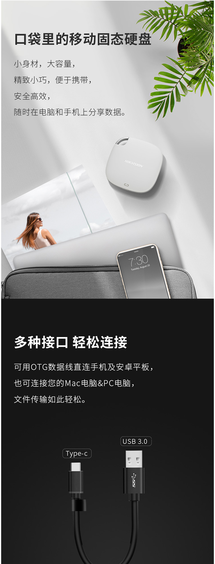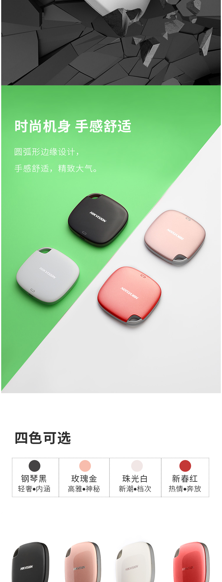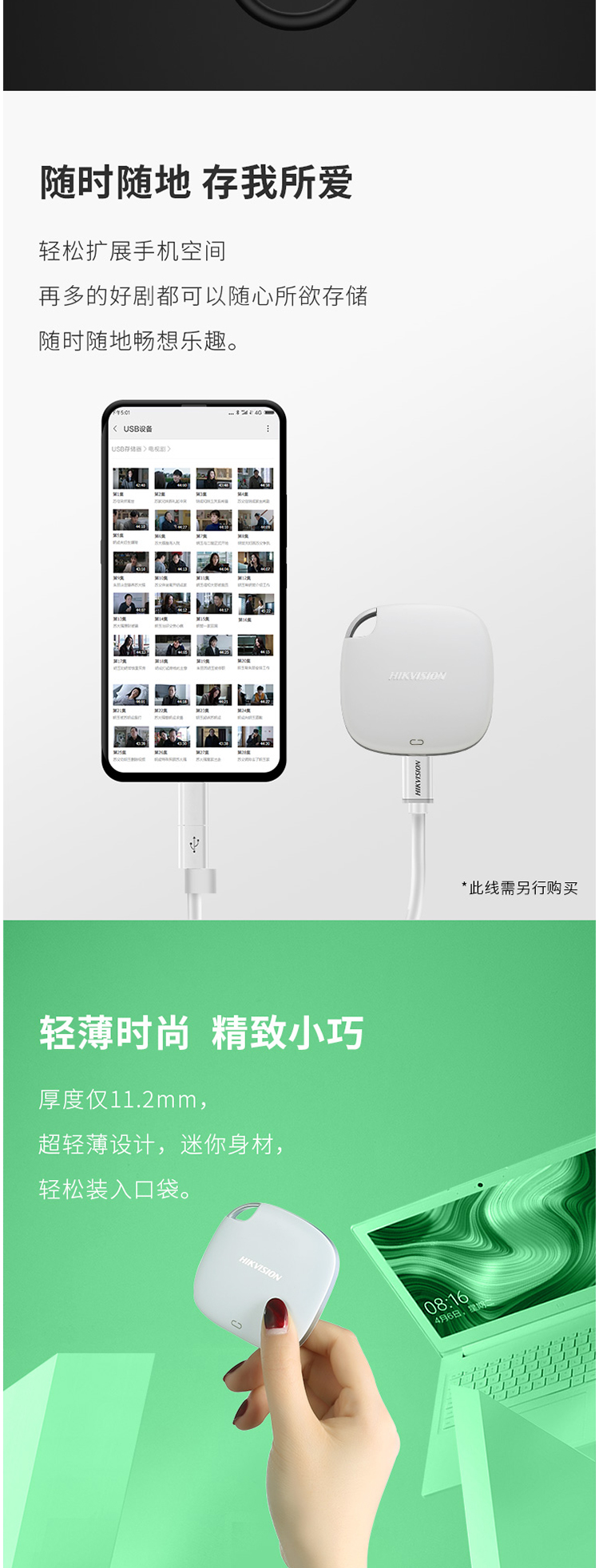 海康威视 HS-ESSD-T100 480G 移动硬盘 USB3.0、typeC 珠光白 (单位:个)
