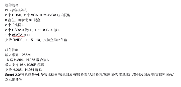 海康威视 DS-8616N-I8/CBQ 2U标准机架式 2个HDMI 网络硬盘录像机 (单位:台)