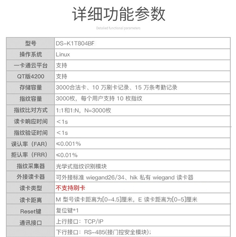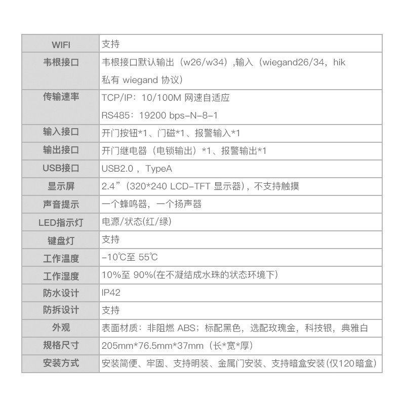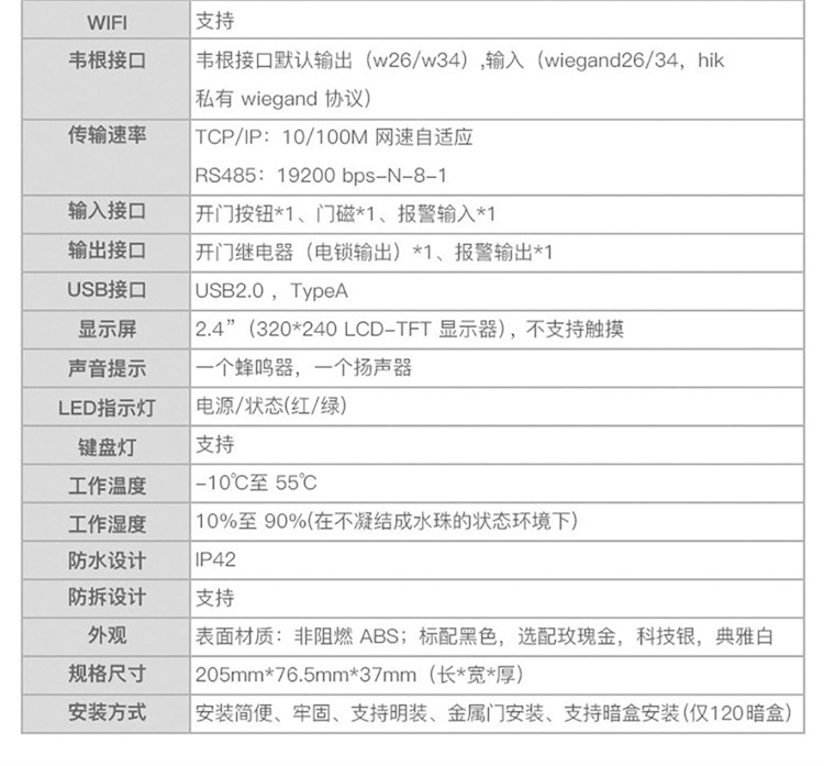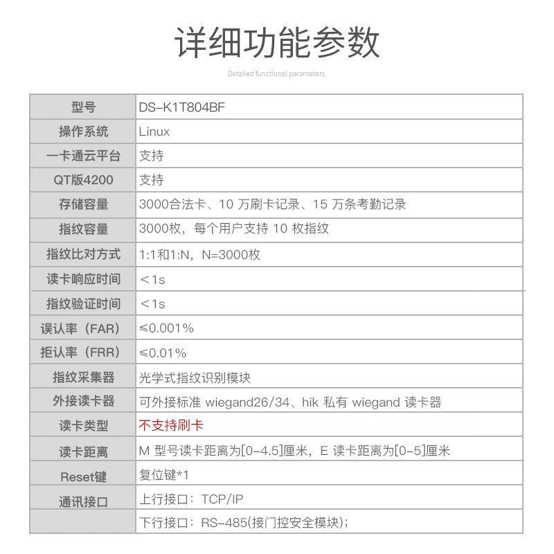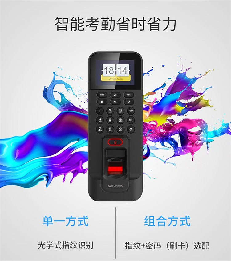 海康威视 DS-K1T804BF 205*76.5*37mm 门禁考勤一体机(指纹刷卡密码开门) 黑色(单位:台)