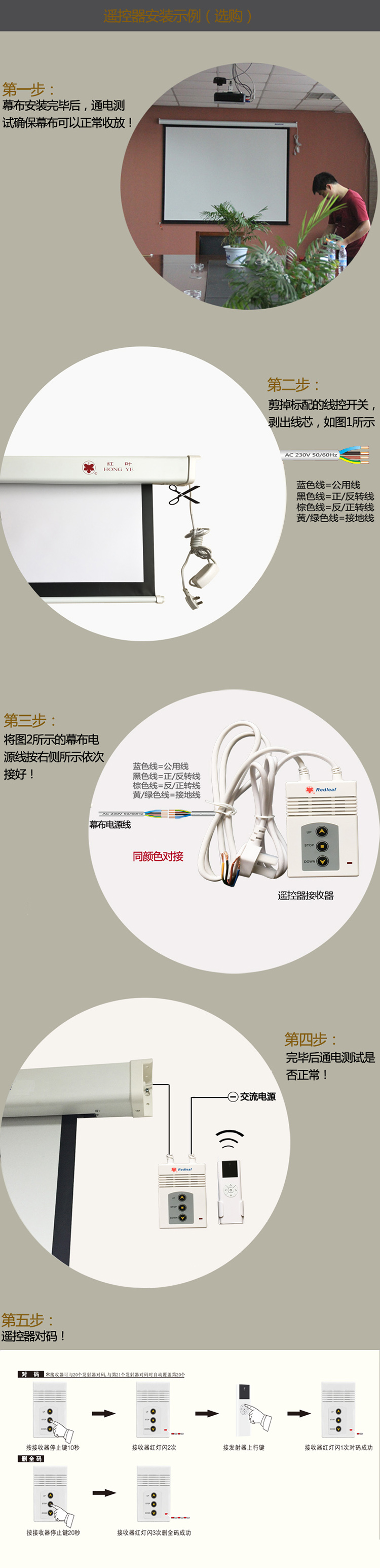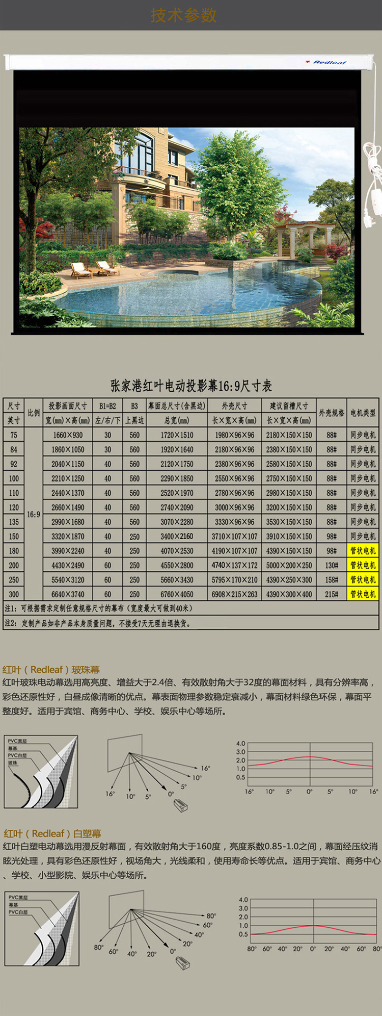红叶 135寸 16:9电动玻珠遥控幕布(单位:个)