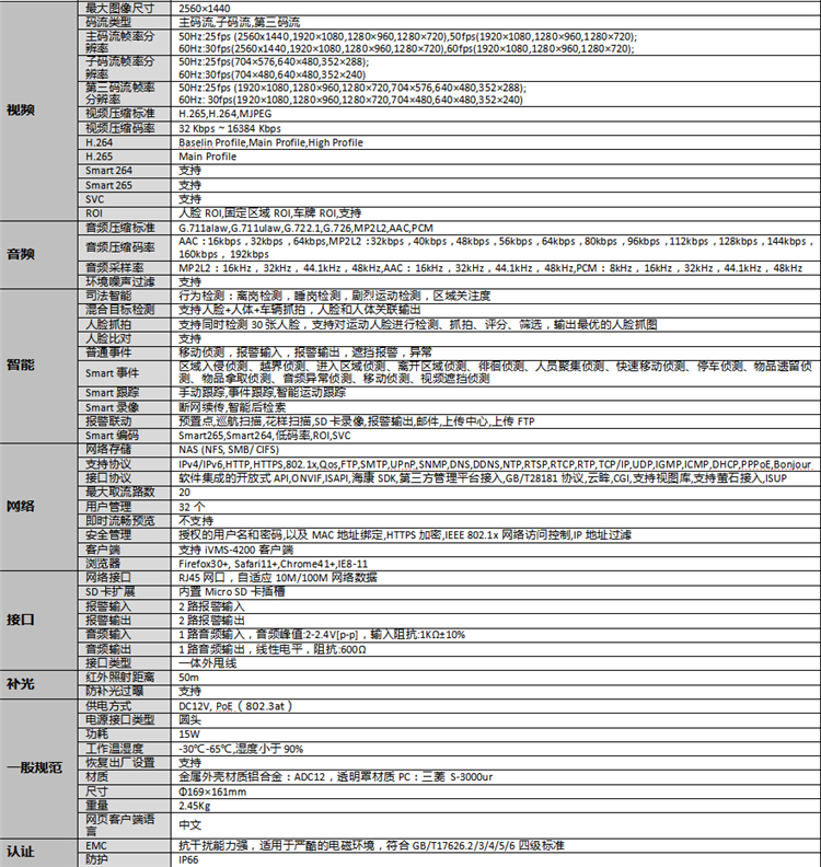 海康威视 (I)DS-2PT7D4XYZIX-ABC/VWS PTZ智能球型摄像机 400万网络高清摄像机 白色(单位:台)