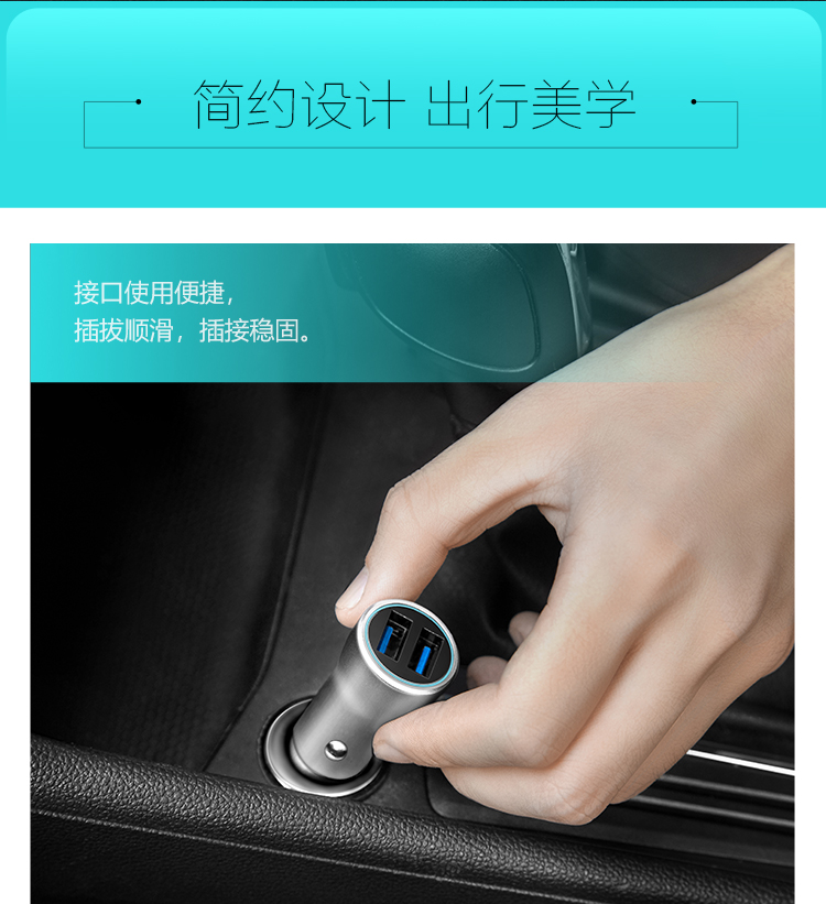 公牛(BULL)CUN180 18W/2.4A双USB一拖二 车载充电器 车充点烟器快充 银色(单位:个)