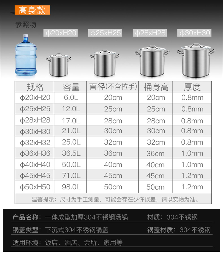 厨欲无限 98L高款 304不锈钢一体 加厚汤桶汤锅 一体成型复合底(内直径50内高50)(单位:个)